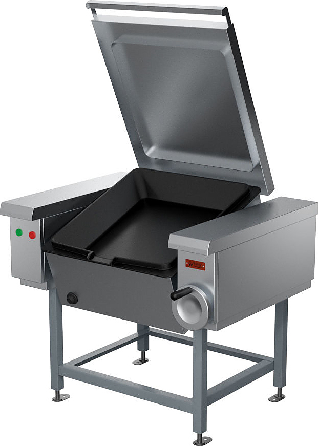 Опрокидывающаяся сковорода Проммаш СЭЧ-0,25 используется на предприятиях общественного питания и торговли для жарения основным способом и во фритюре, для тушения, припускания, пассерования, а также для приготовления на пару мясных, рыбных, овощных блюд и кулинарных изделий. Сварной каркас выполнен из черного металла с порошковым покрытием, облицовки - из углеродистой стали с покрытием, чаша - из чугуна, передняя облицовка и крышка - из нержавеющей стали.