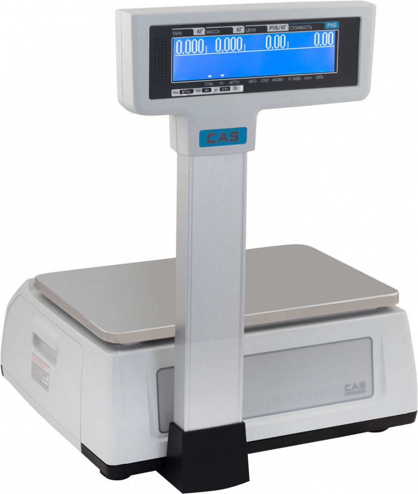 Торговые весы CAS CL3000-6P TCP-IP используются на предприятиях общественного питания и торговли. Модель оснащена графическим жидкокристаллическим дисплеем на стойке, сменным картриджем этикеток и удаленными контролем состояния весов и загрузкой / выгрузкой параметров.