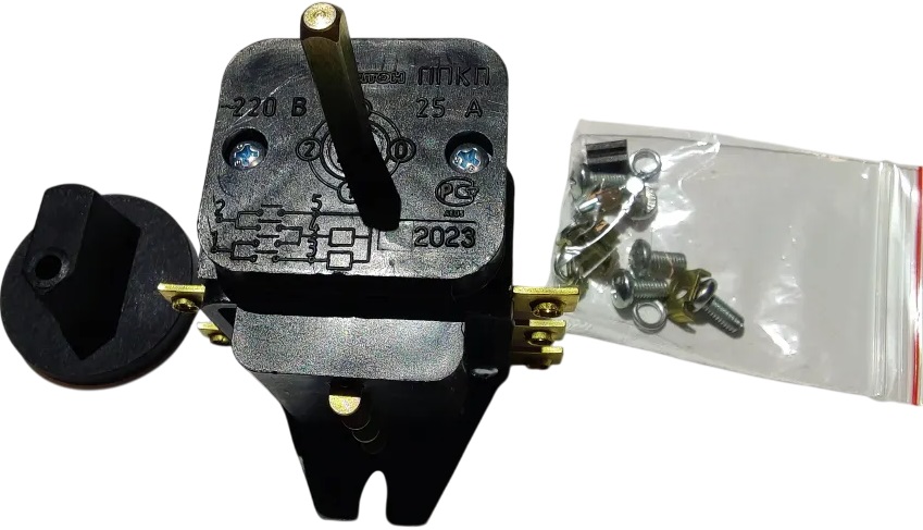 Переключатель жаростойкий Abat ТПКП 25А (ППКП) в комплекте с ручкой предназначается для включения и переключения мощности нагревательных элементов, устанавливается в тепловое оборудование Abat и других производителей.